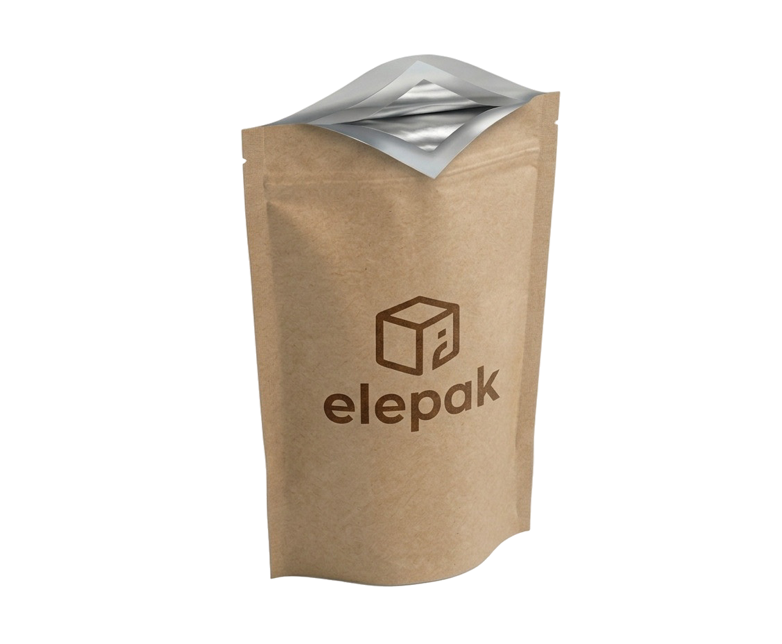 Este laminado técnico combina la estética natural y cálida del Papel Kraft exterior con la barrera de protección del Aluminio. La capa de papel proporciona una textura táctil, orgánica y de alta calidad. Internamente, la lámina de aluminio garantiza una barrera total del 100% contra la luz, el oxígeno y la humedad, asegurando la máxima frescura y vida útil.